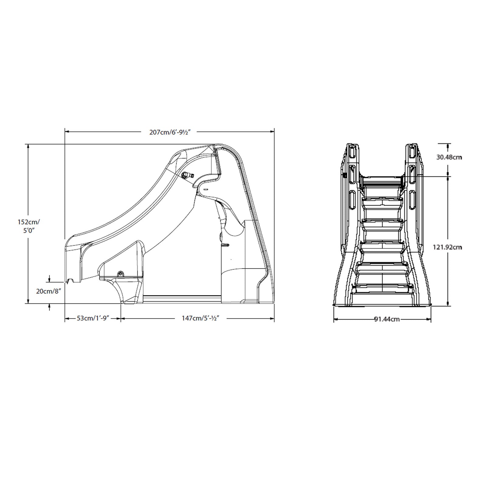 SlideAway es el tobogán de piscina desmontable y seguro de SRSmith. Combina seguridad, diversión y durabilidad en un tobogán que se puede montar y desmontar fácilmente de la plataforma en tan solo unos minutos. SlideAway es el primer tobogán de piscina que cumple totalmente con las normas de la CPSC y que no tiene que estar fijado de forma permanente a la plataforma de la piscina. Especificaciones del producto: