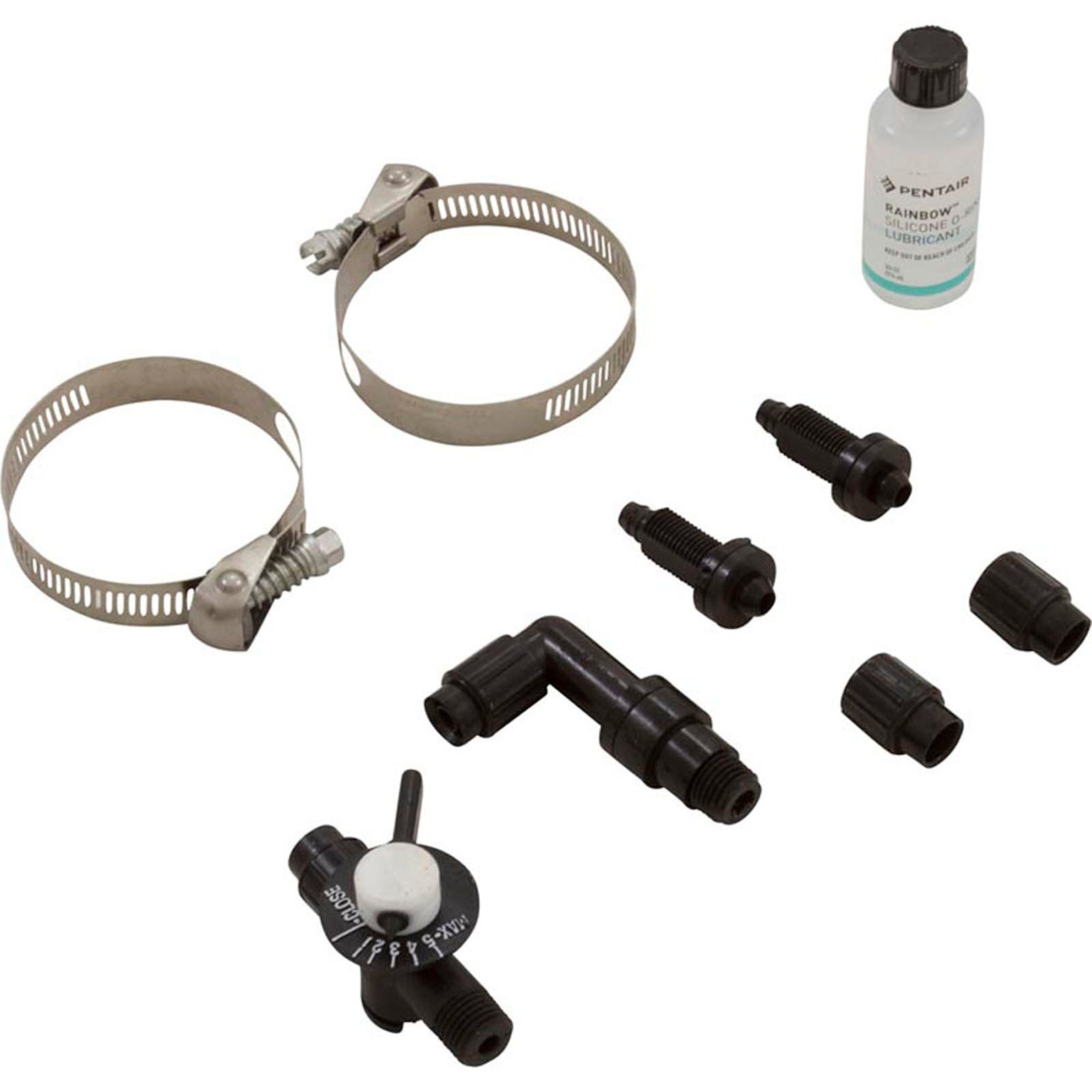 Se adapta a piscinas o spas existentes. Funciona en el lado de presión de la bomba. Utiliza mangueras de alimentación de 1/4 pulg., válvula de control y accesorios.