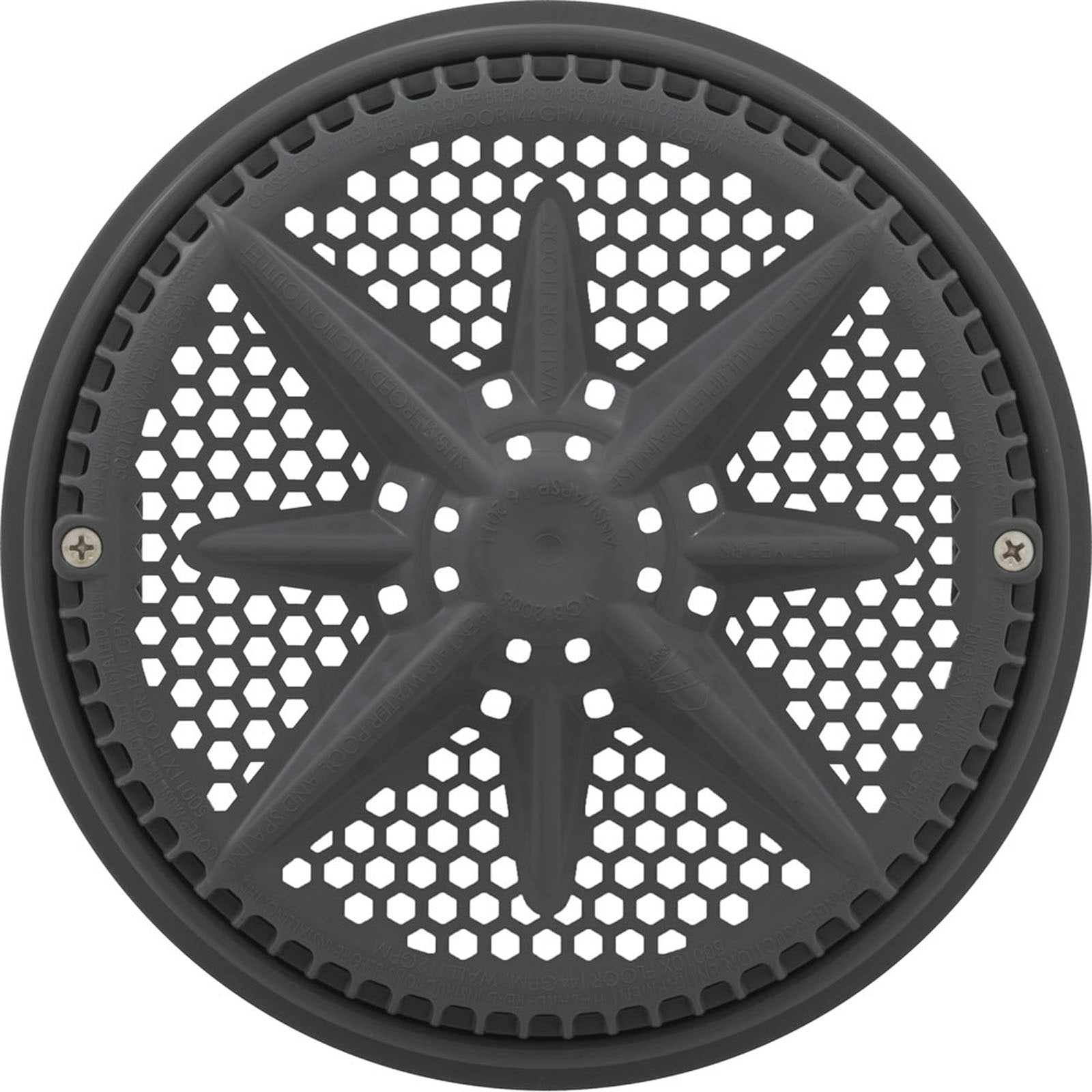 Rejilla de drenaje principal, PentairStarGuard, 8", 112 gpm, gris oscuro, anillo grande