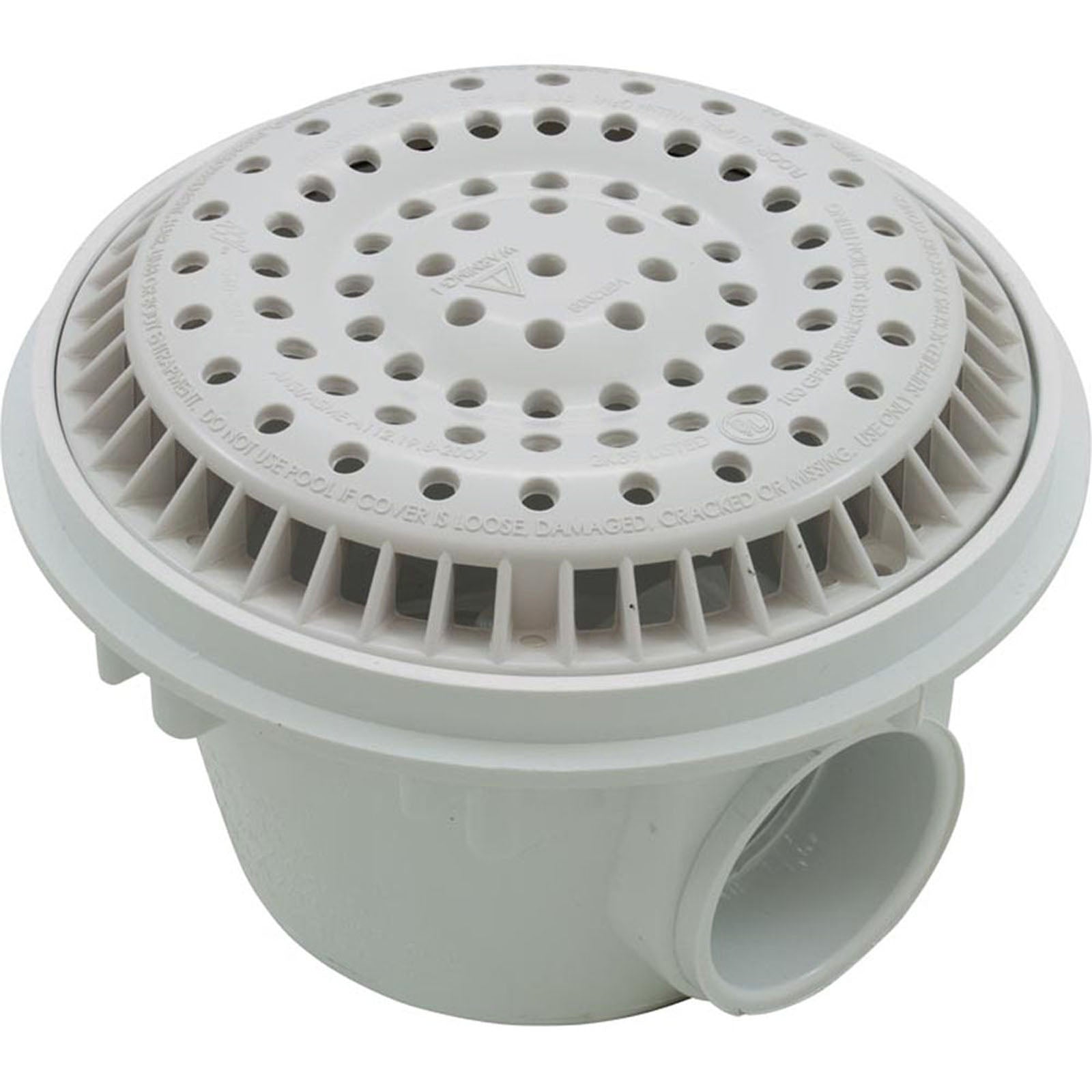 Drenaje principal, WW Anti Vortex, redondo de 8", pistola, 2", lateral, blanco
