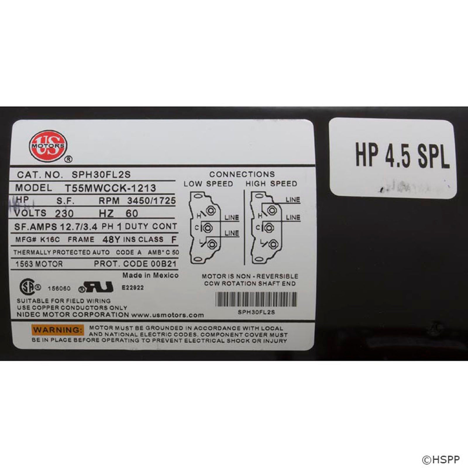 - Bomba de doble velocidad (también se puede cablear para una sola velocidad).