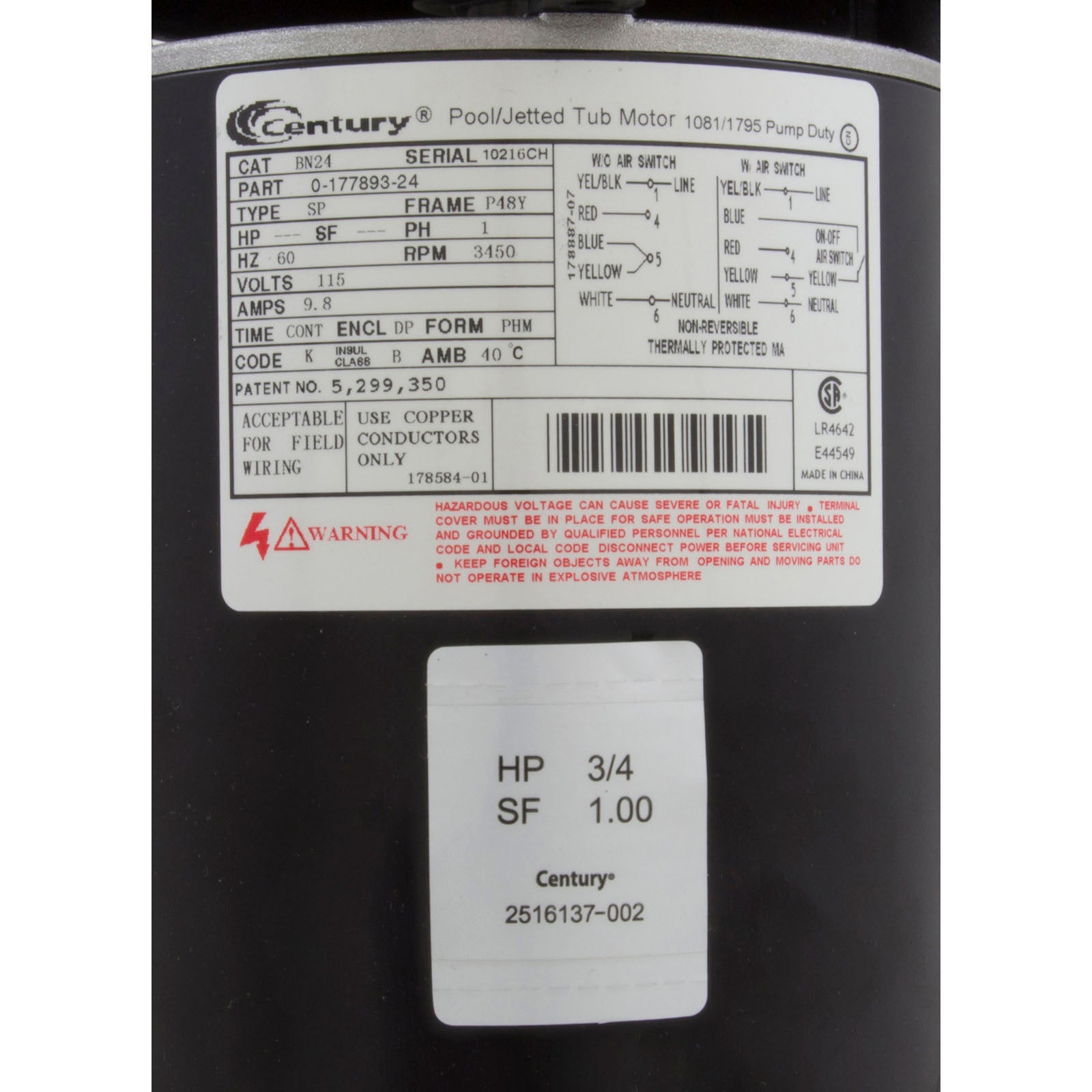 Bomba, Ultima, 0,75 hp Century, 115 V, 1 velocidad, 48 frenos, 1-1/2", Ctr Dis