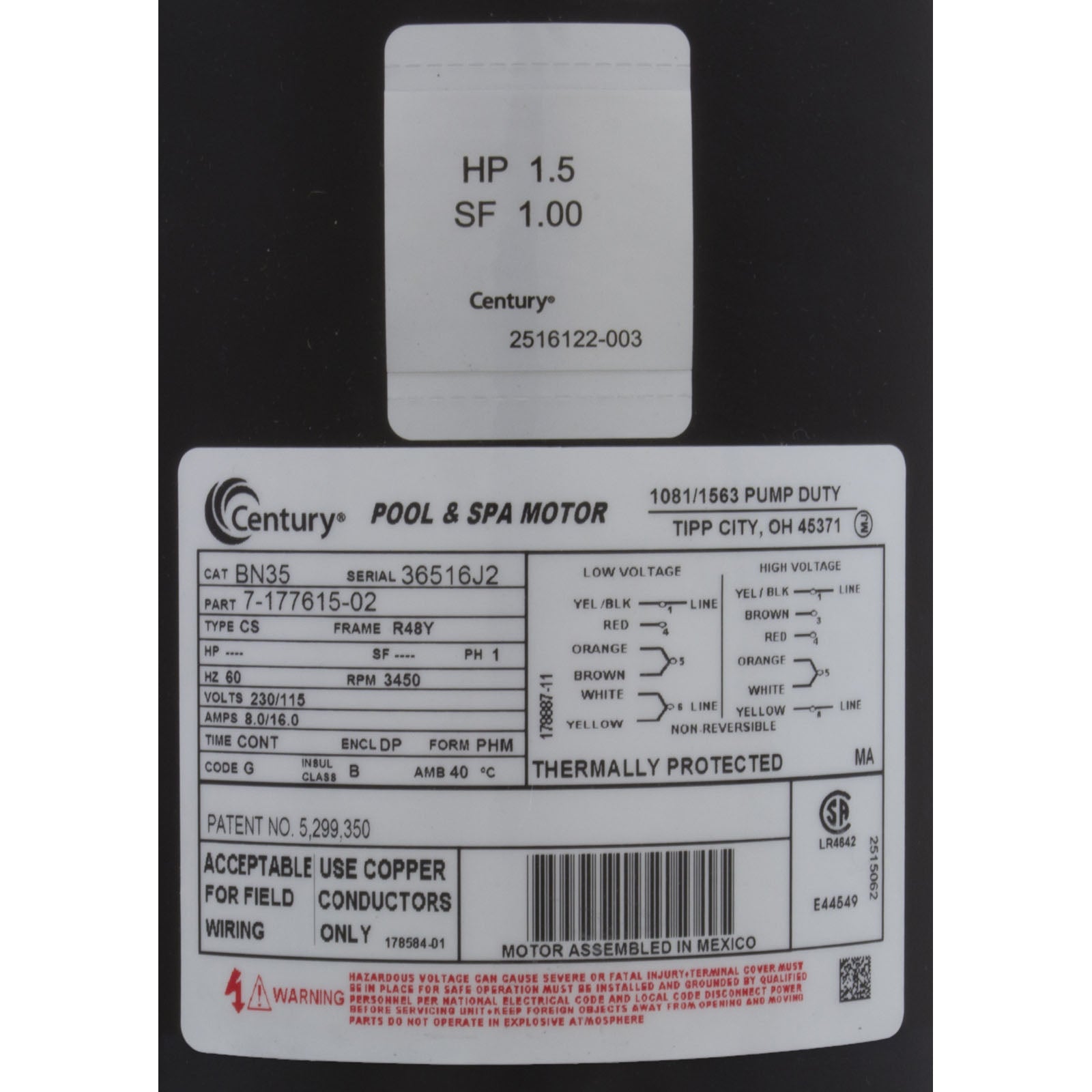 Bomba, WW Exec, 1,5 hp Century, Conv, 1 velocidad, 48 fr, 2-1/2" x 2"