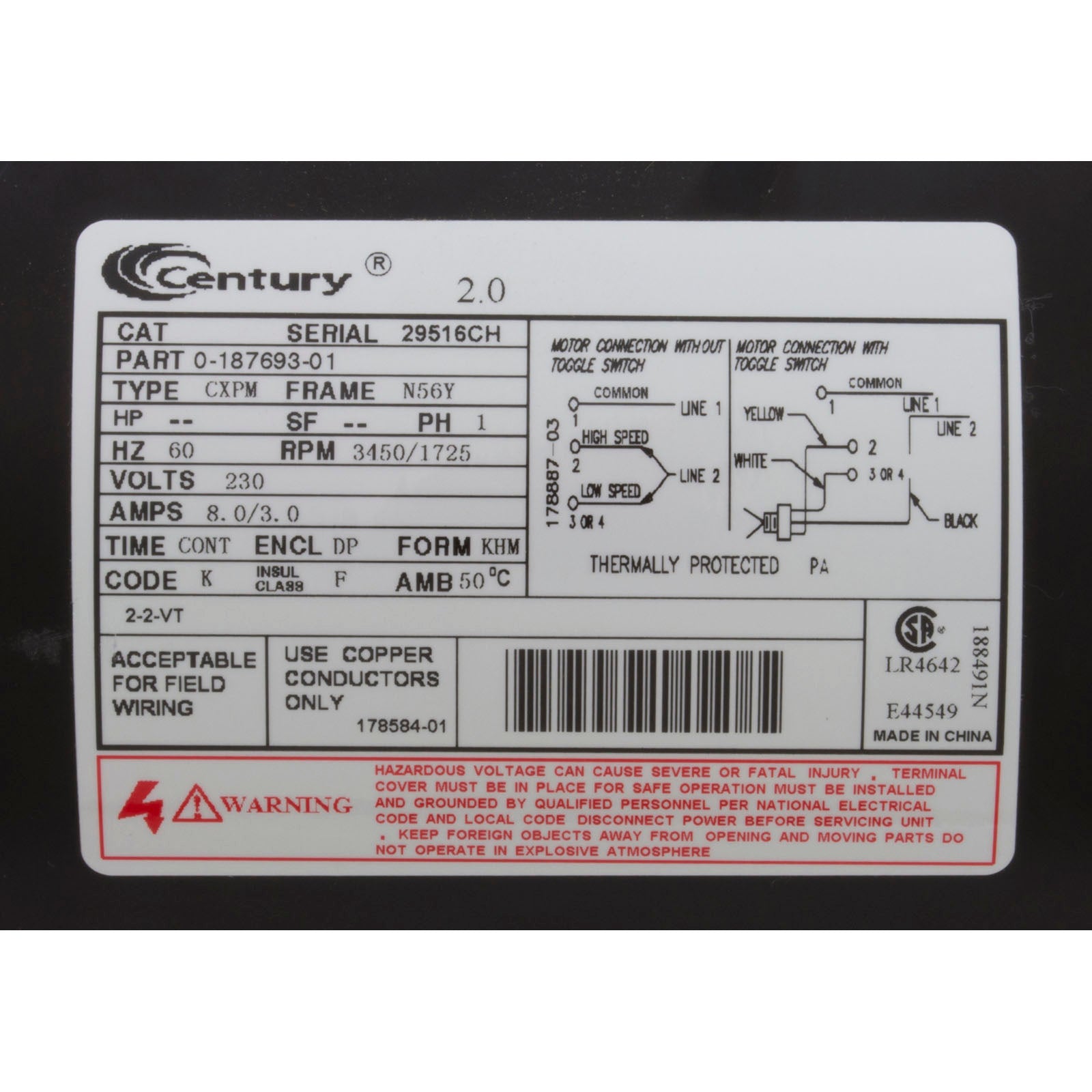 Bomba, WW Exec, Century, 2,0 hp, 230 V, 2 velocidades, 56 fr, 2"