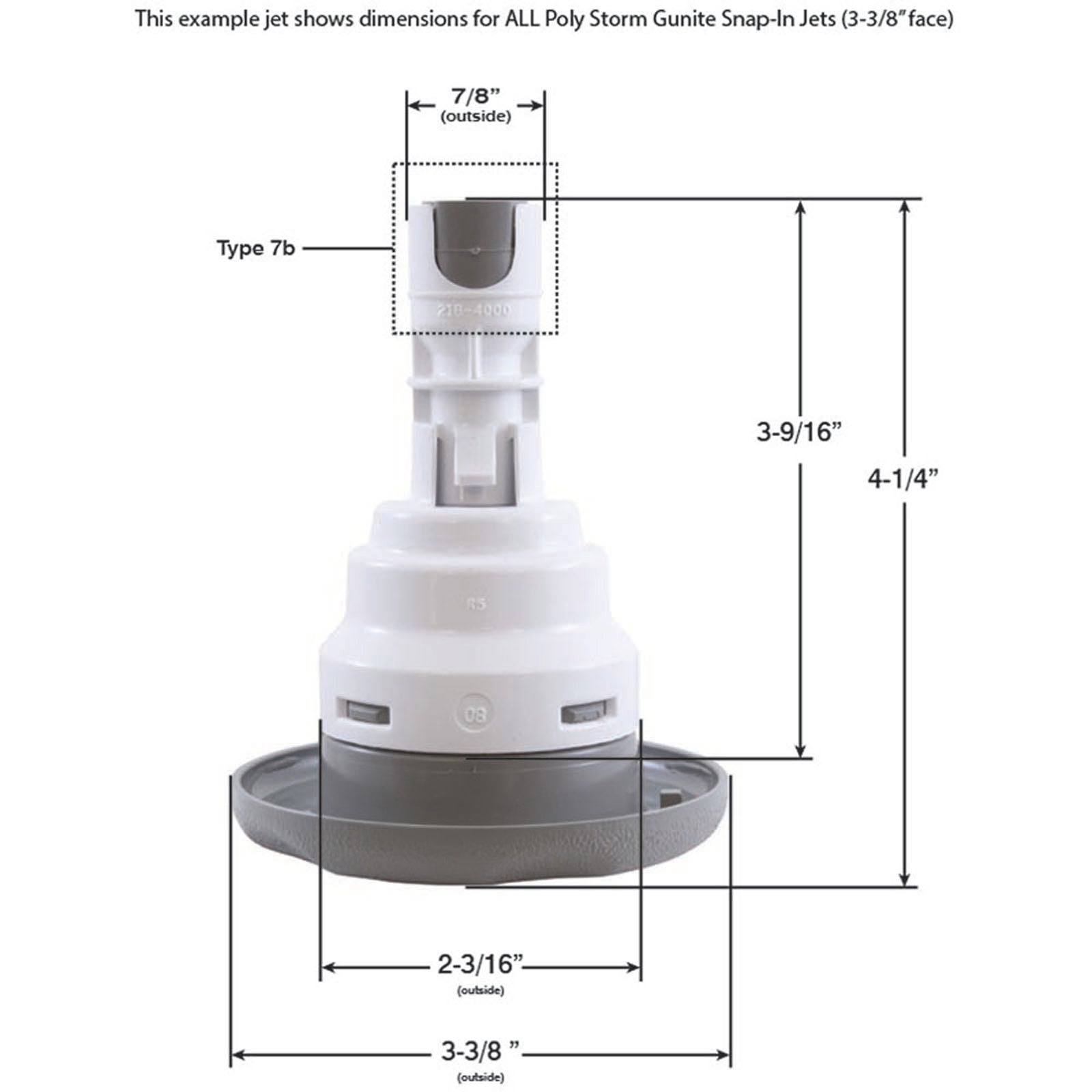 Jet interne Waterway Poly Storm Gunite avec diffuseur à encliquetage. Noir, face festonnée texturée de 3-3/8", avec insert de buse interne de style massage et amovible. Disponible dans d'autres couleurs et styles.