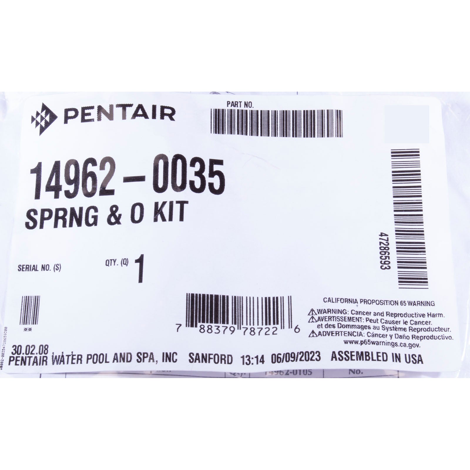 14962-0035 Pentair Spring & O-Ring KitFor: Sta-Rite® 1-1/2 Inch MultiPort Top Mount Valve