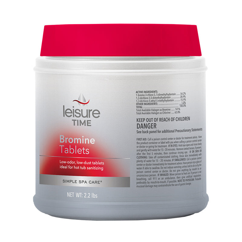 Leisure Time 2.2 lb bromine tabs offer a convenient and effective way to sanitize your spa water. They are available in a 12-count quantity for consistent spa maintenance. MPN: 45401.Additional Info
