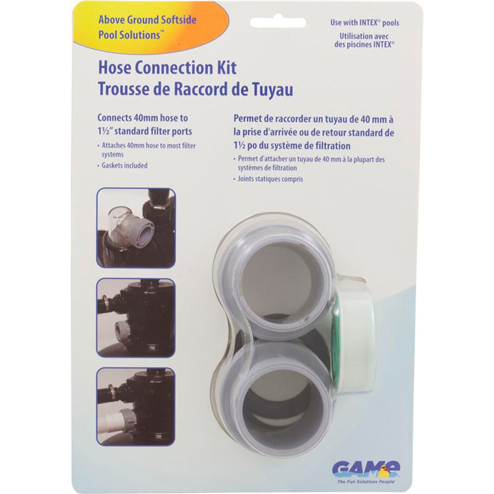 This kit is designed to allow the use of a 40mm filter hose with standard 1-1/2" equipment. It Includes: