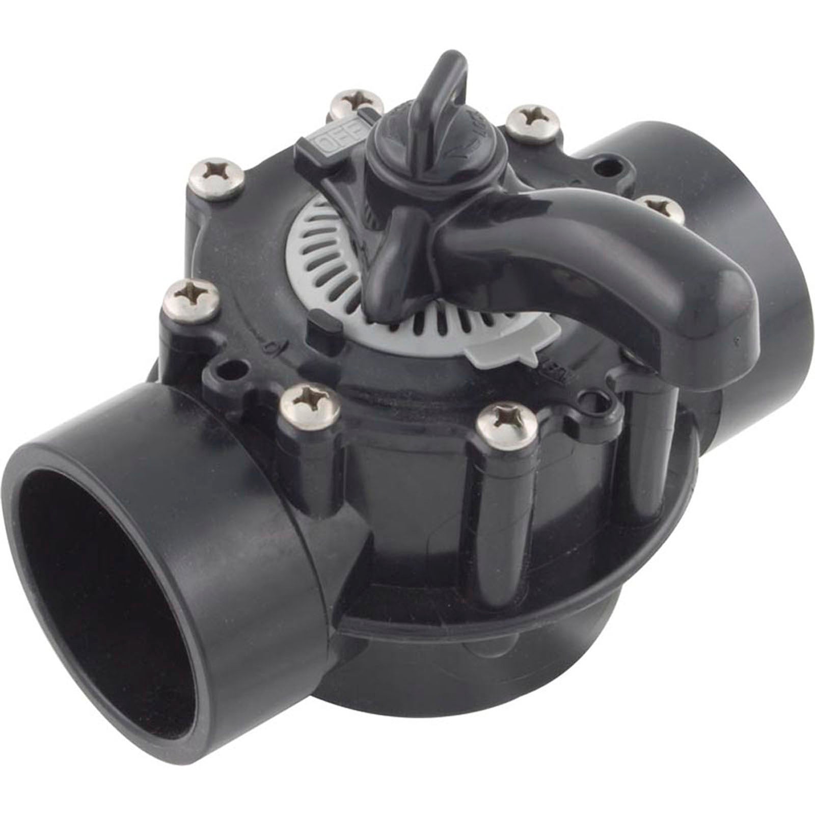 25912-204-000 Diverter Valve, CMP Hydroseal, 2" Slip/2-1/2" Spigot, 2 Port.LifeSeals never need lubrication. Flow tabs included for marking ports. Awarded the NSF International seal. Exclusive 32-Stop Dial for Precise Control. Advanced T-Gasket Seal on Union Valves.