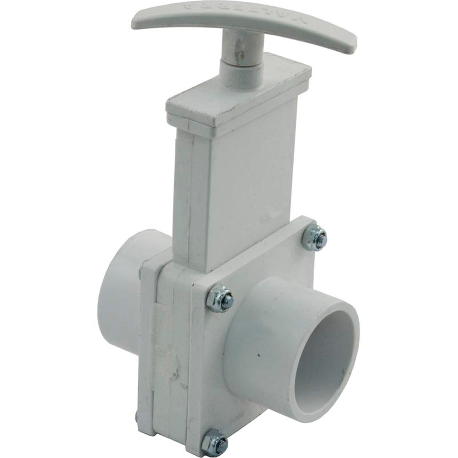 3-Piece Gate Valve Assembly With plastic paddle. Reliable 3-piece body design allows unrestricted water flow and is easily disassembled for in-line servicing. Internal seals and paddles conform with ozone specs and the shaft is protected with a triple Oring seal. Standard pvc body, also available in ABS. Stainless steel paddle available on 2" and 3" valvesAdditional Info