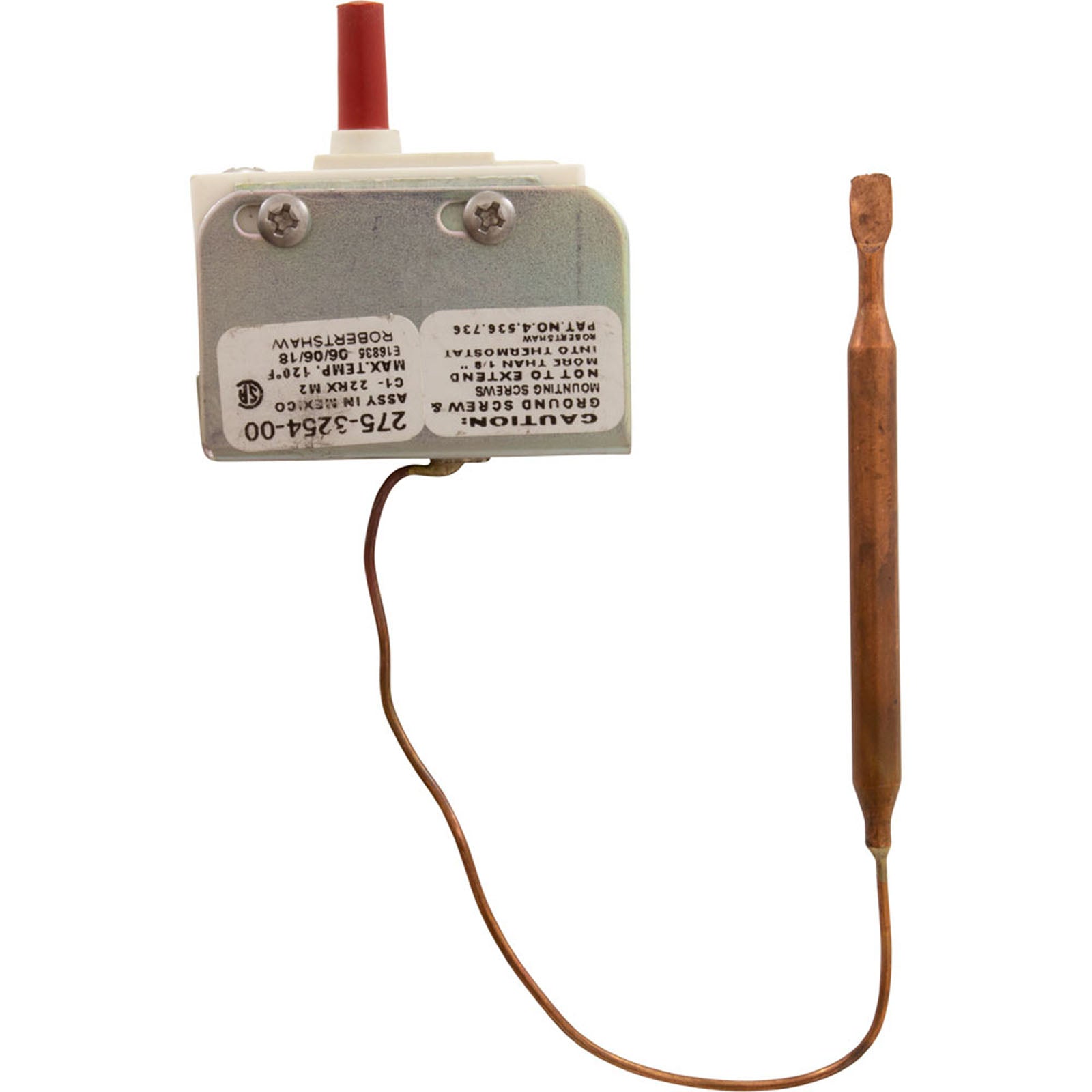 Hi-Limit, 1/4"dia, 6" Capillary, SPST, 25A, Baptistry