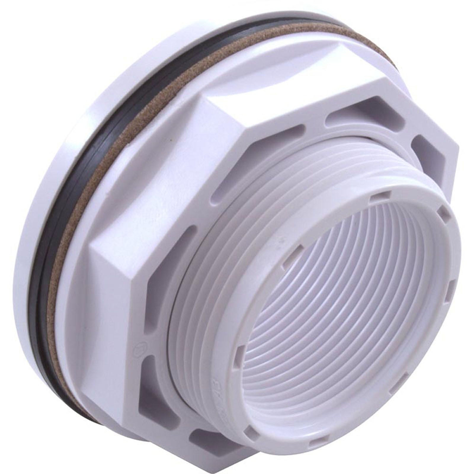This SP1023 Inlet Fitting features a 2-3/8" hose connection and two 1-1/2" Female Pipe Thread ports, complete with a gasket and nut. Ideal for pool and spa plumbing applications.Additional Info
