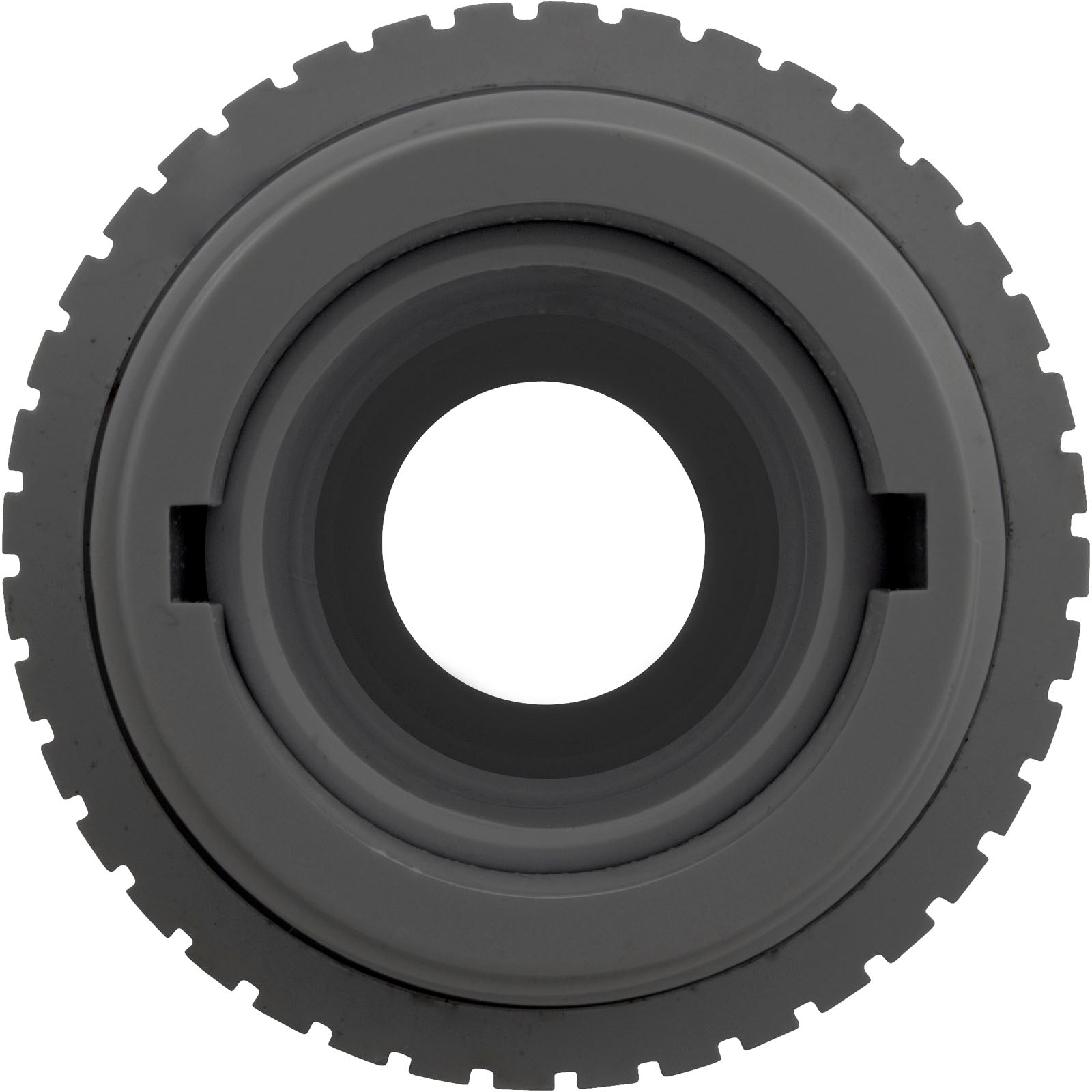 This is a Pentair 540023 inlet fitting with a 1-1/2" Male Pipe Thread connection and a 3/4" orifice, finished in dark gray. Ideal for pool and spa applications.
