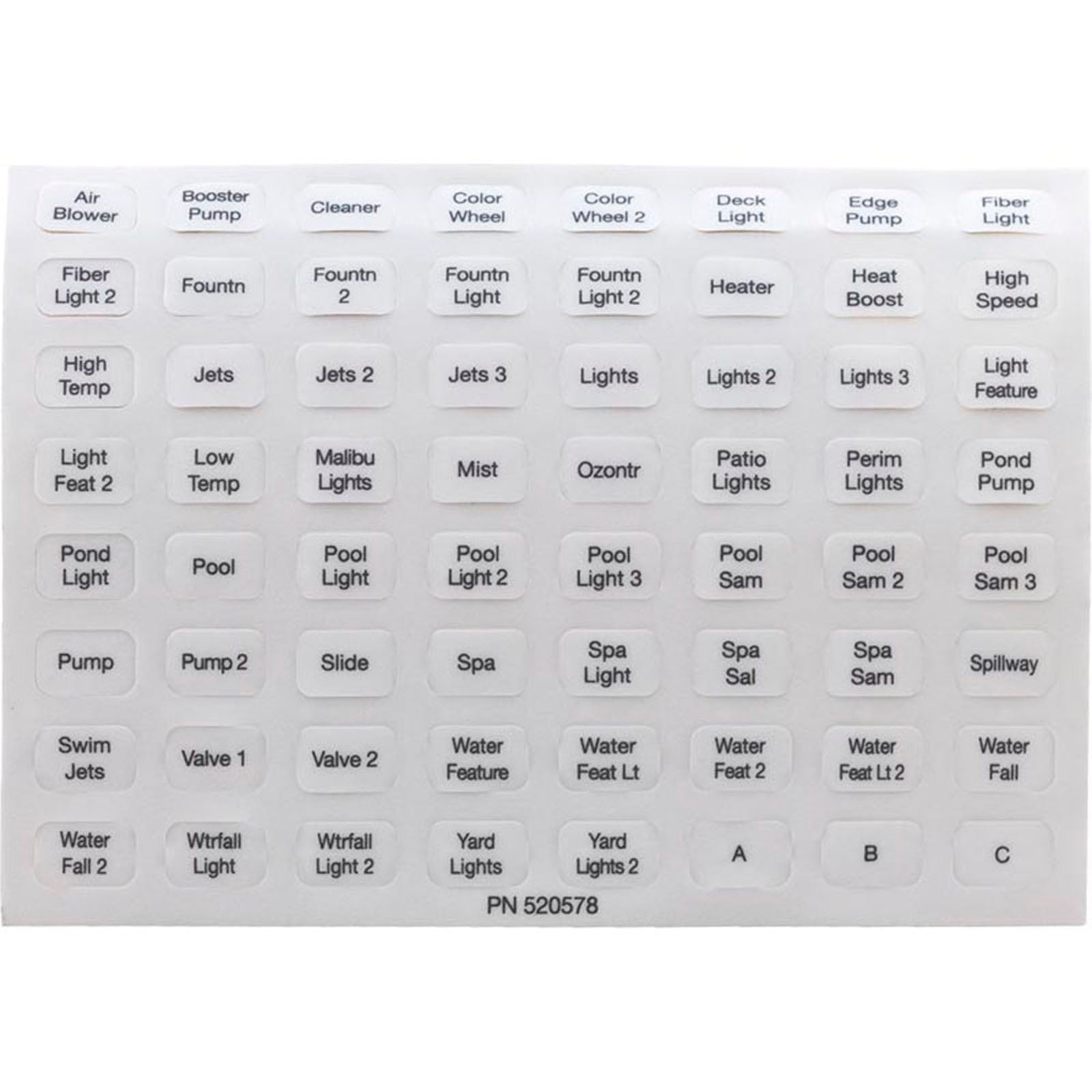 This is a set of 10 replacement labels (part # 520658) for your Pentair EasyTouch indoor control panel.