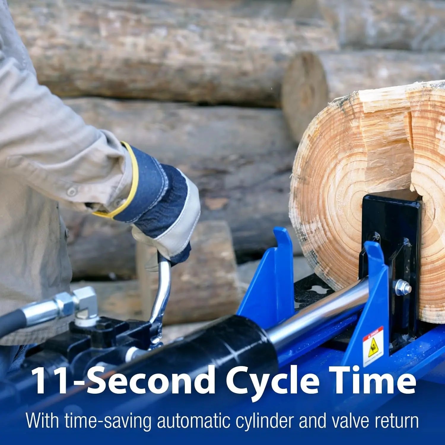 🔹 High-Speed Splitting Efficiency – Featuring a rugged 8-inch hardened steel wedge, this splitter processes logs up to 24 inches long with ease. Its fast 11-second cycle time ensures seamless, high-volume operation.