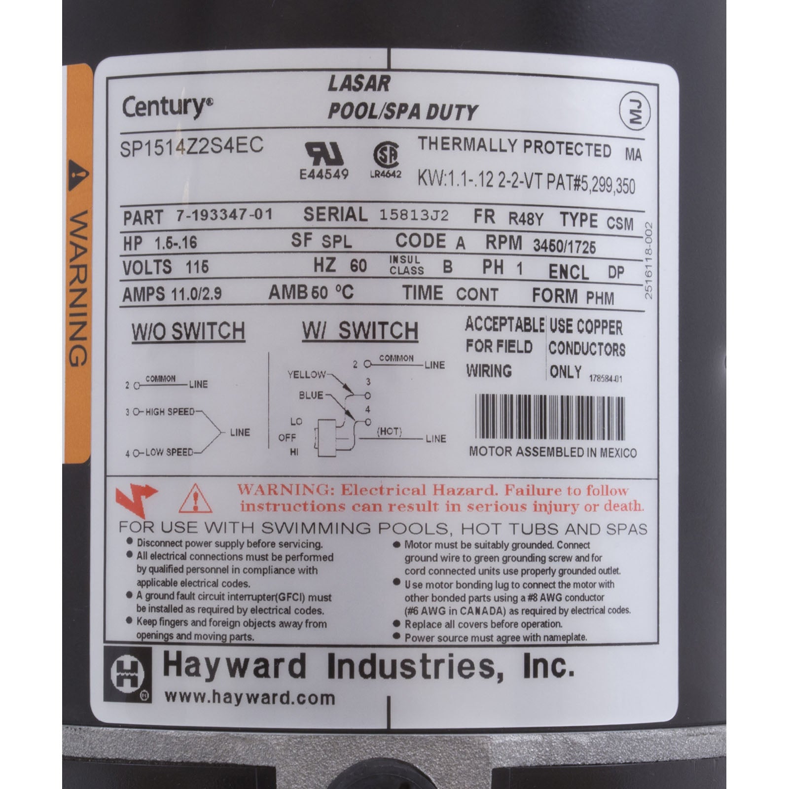 | Manufacturer | Hayward Pool Products |