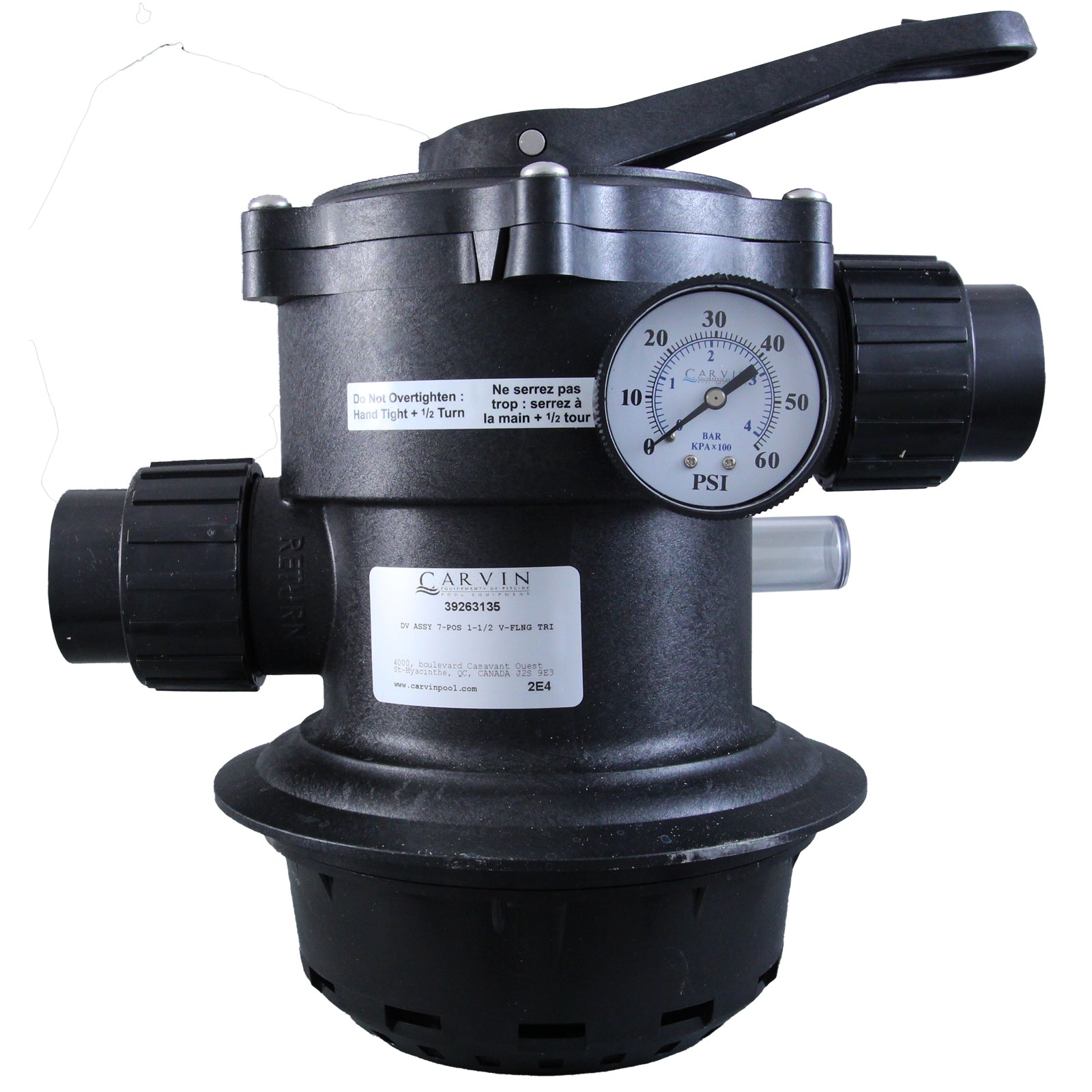 39263035K Multiport Valve, Carvin DVK7C, 1-1/2", 7 Pos, Clamp, New StyleCarvin 7-Position Dial Valve for Carvin Laser Sand Filters - This valve is for use with Carvin laser sand filters. It features 7 different modes: filter, backwash, whirlpool, winterize, rinse, drain and test operations. Made for easy installation and use, this part will help ensure the best service life possible.