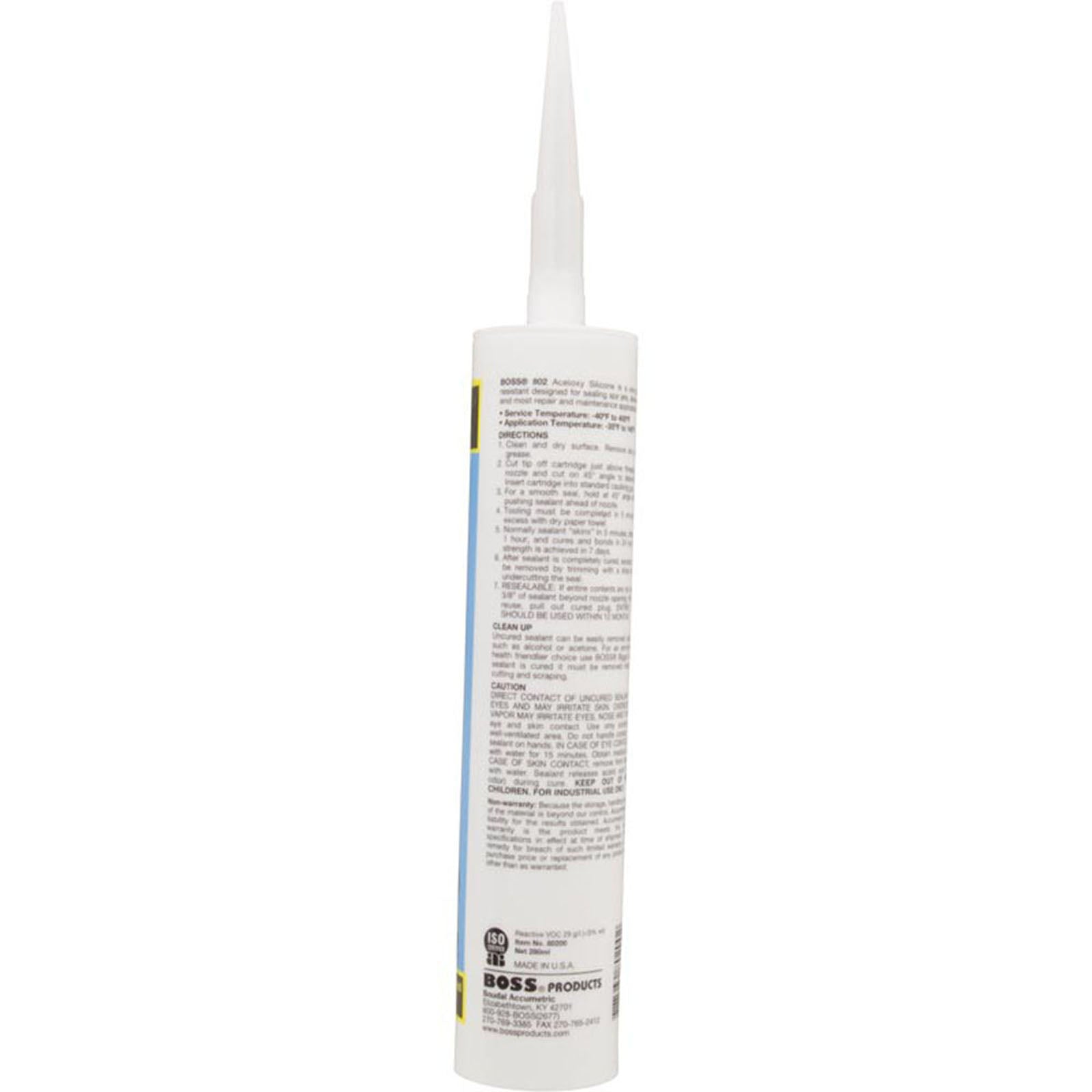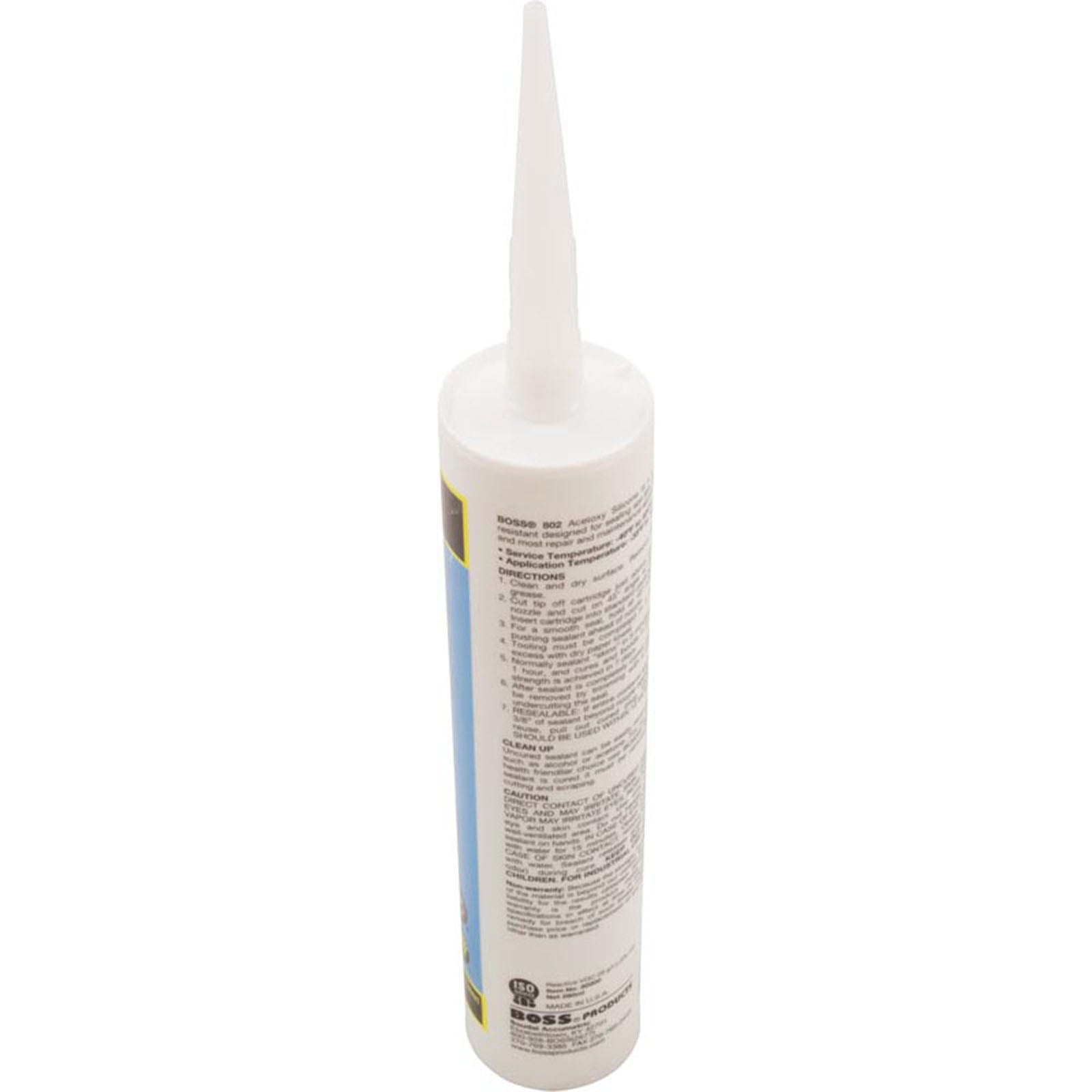 This is a 10.3 oz tube of clear, general-purpose Silicone Boss 802 sealant (80200) for pool and spa applications.Additional Info