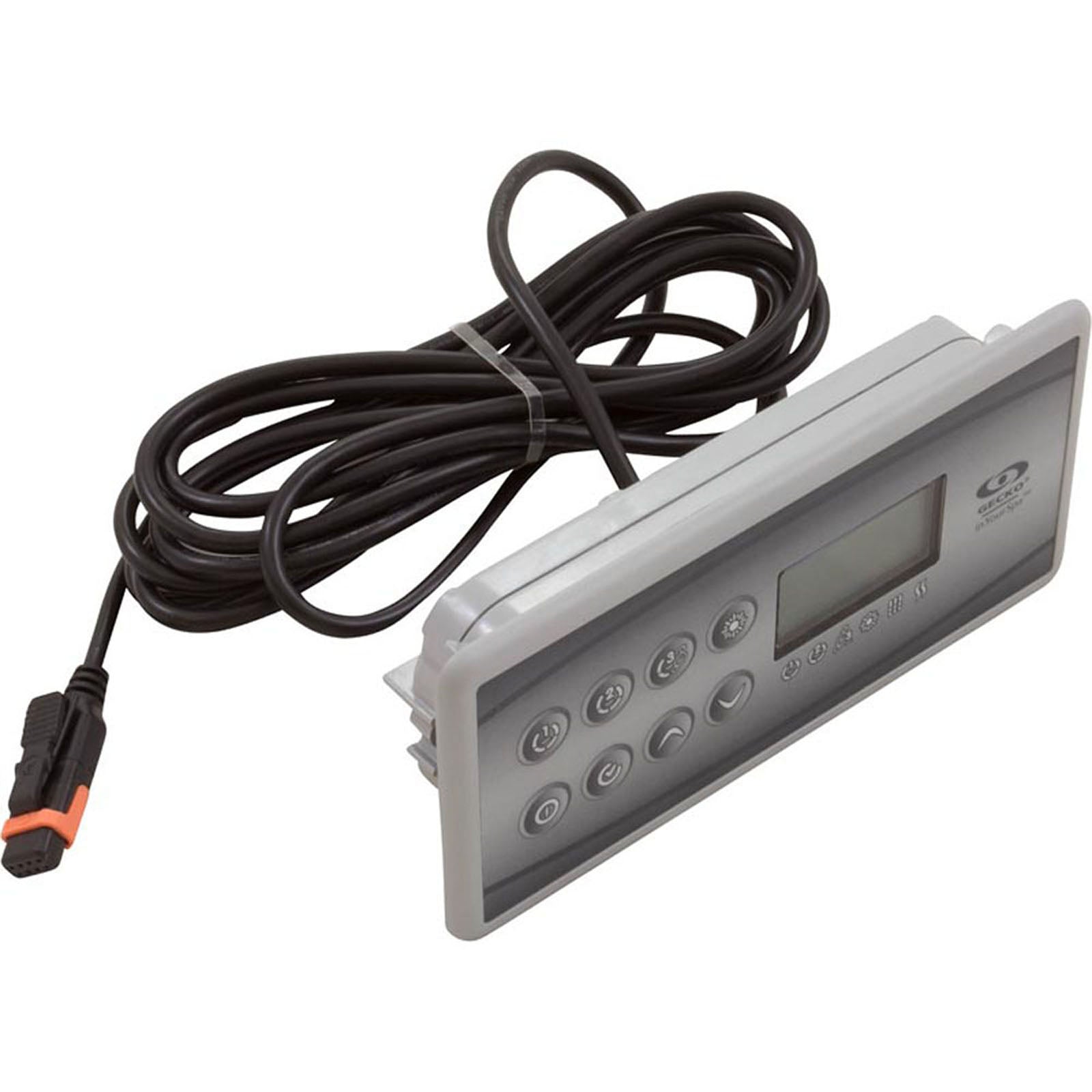 This is the BDLK83OP Topside Gecko in.k8 spa control panel featuring an 8-button interface, 3 outputs, and an LCD display with overlay.Additional Info