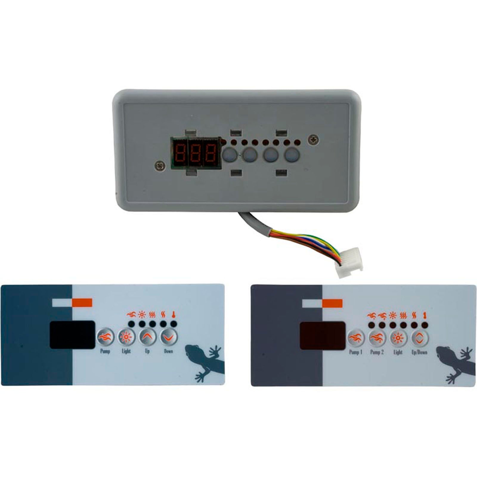 This is a BDLTSC18PPD Topside Gecko TSC-18/K-18 spa control panel featuring 4 buttons, a small rectangular design, LED display, and includes 2 overlays.Additional Info