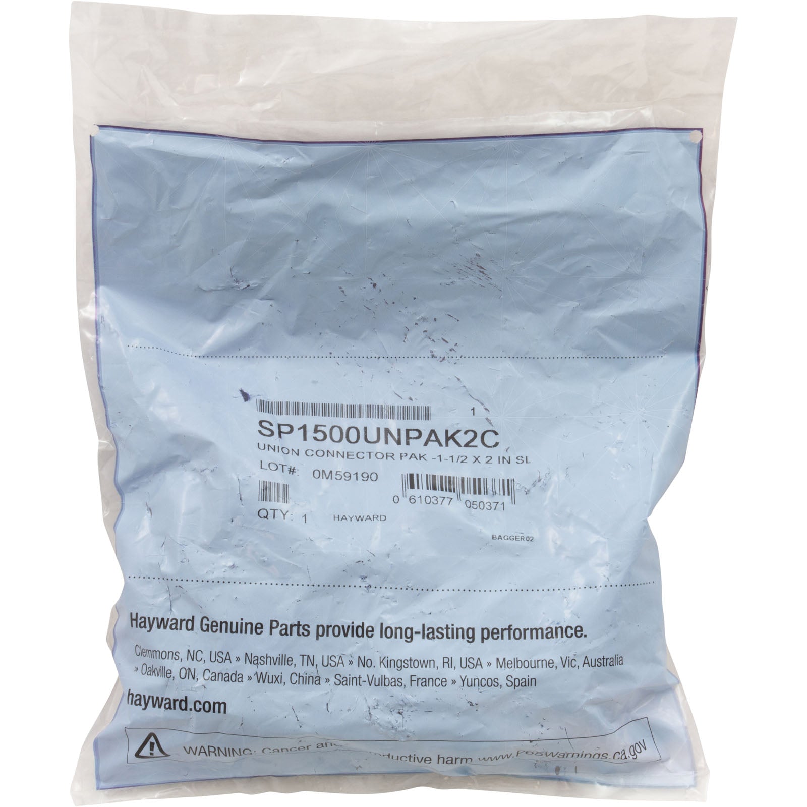SP1500UNPAK2C Hayward Union, 1-1/2" Slip x 2" Spigot, Flush, Quantity 2